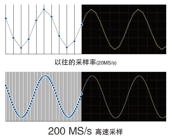 通過包絡線的測量方法,進行100MS/s的過采樣同時,能夠記錄設置間隔的max值和min值。